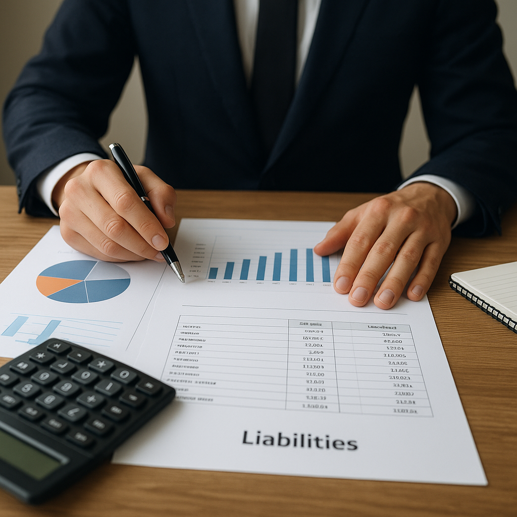 - Zobowiązania: pożyczki, kredyty, zobowiązania handlowe i podatkowe.